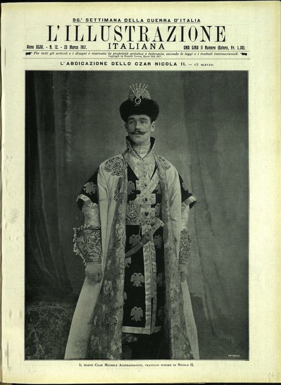 In-4, brossura. In buono stato di conservazione. In questo numero:L'abdicazione dello Czar Nicola II.