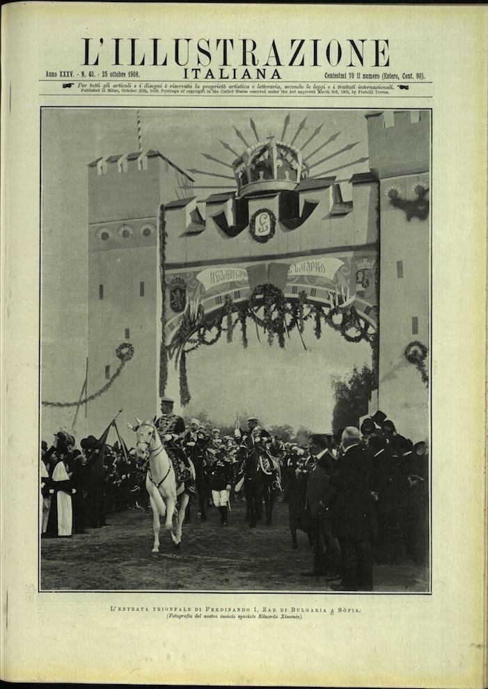 In-4, brossura. In buono stato di conservazione. In questo numero:L'entrata trionfale di Ferdinando I, zar di Bulgaria, a Sofia.