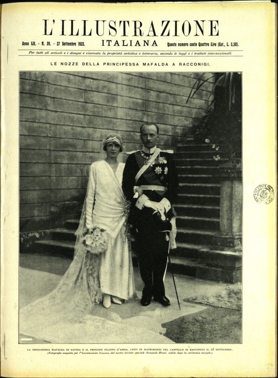 In-4, brossura, mancante delle pagine pubblicitarie ma in buono stato. In questo numero:Le nozze della principessa Mafalda a Racconigi.