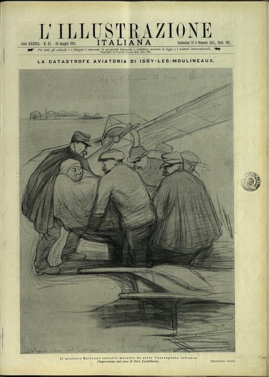 In-4, brossura, mancante delle pagine pubblicitarie, leggermente smarginato al piede, ma complessivamente in buono stato. In questo numero:La catastrofe aviatoria di Issy-Les-Moulineaux.