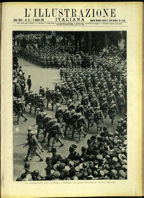 In-4, brossura. In buono stato di conservazione. In questo numero:La celebrazione della vittoria a Londra, 19 luglio: sfilano le truppe italiane.