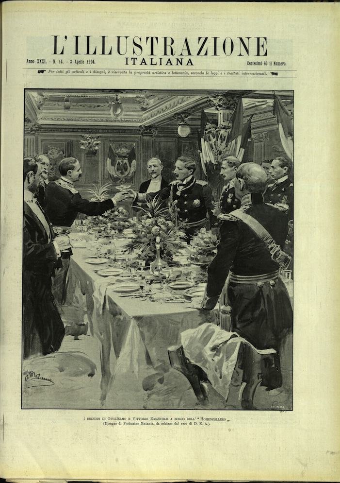 In-4, brossura. In buono stato di conservazione. In questo numero:I brindisi di Guglielmo e Vittorio Emanuele a bordo dell'Hohenzollern'.