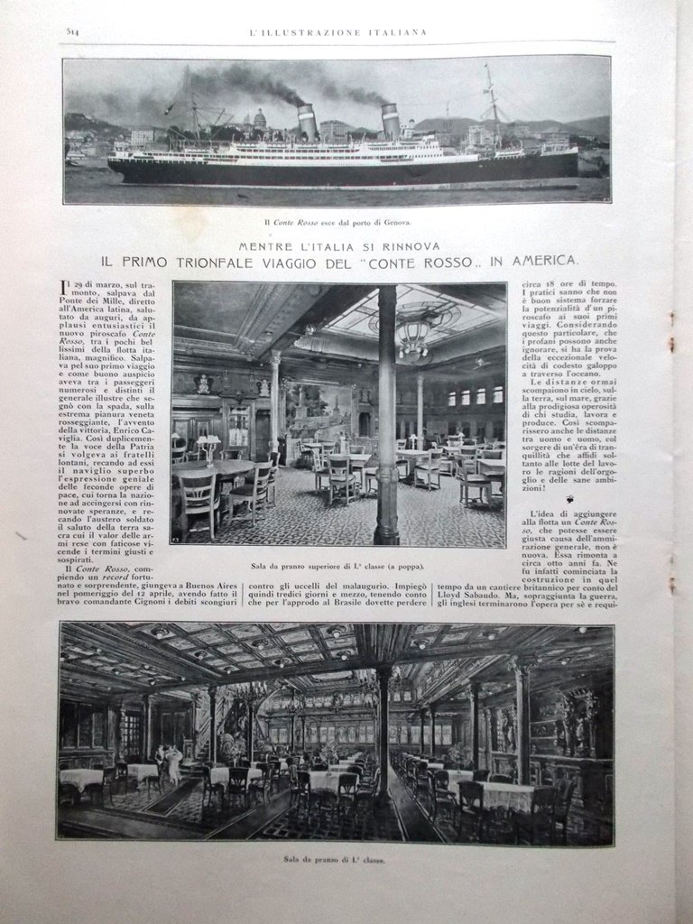 Il primo trionfale viaggio del "Conte Rosso" in America.