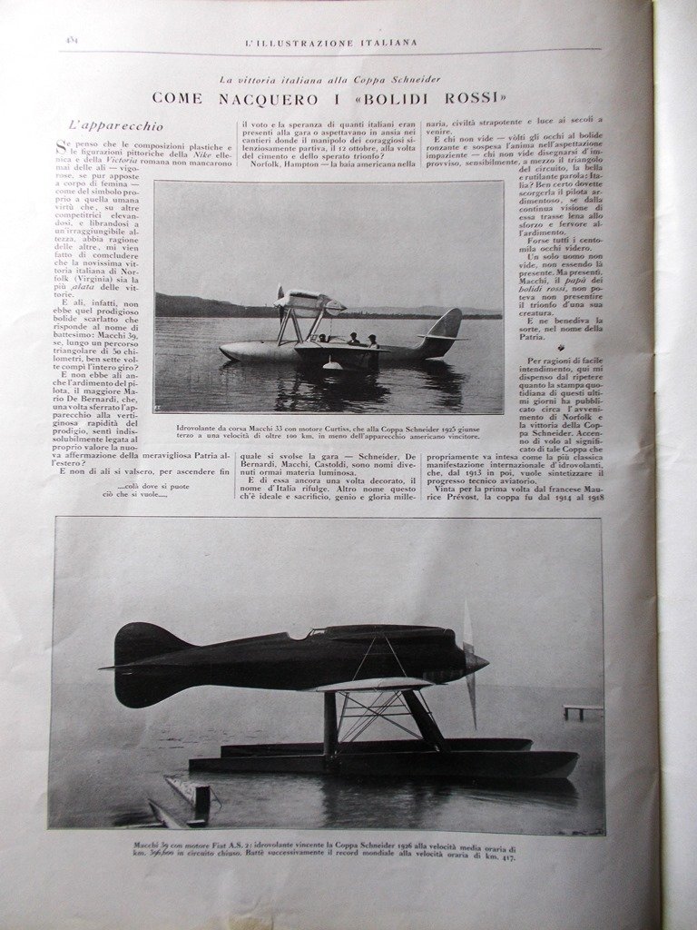 L'Illustrazione Italiana 5 Dicembre 1926 Puccini Vesuvio Bolidi Rossi Schneider