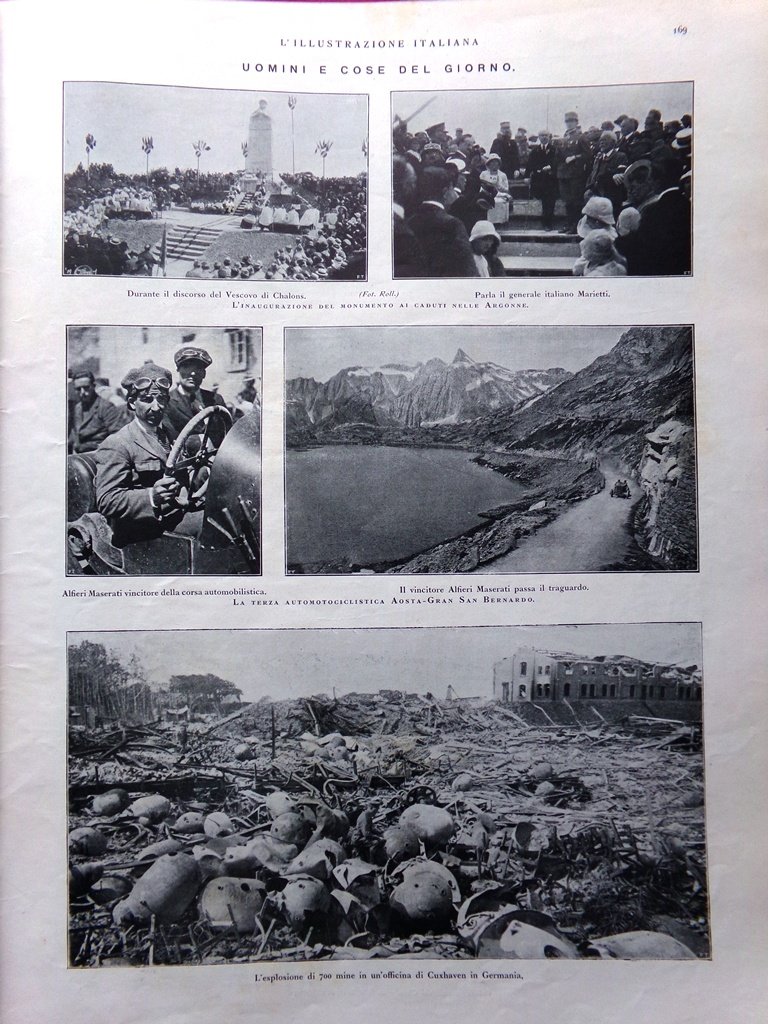 Uomini e cose del giorno: la terza automotociclistica Aosta-Gran San Bernardo, il monumento ai caduti nelle Argonne