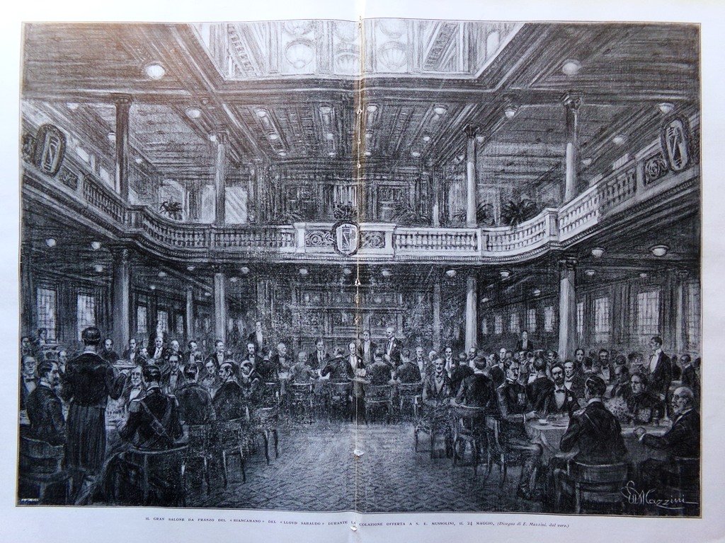 Il gran salone da pranzo del "Biancamano" del "lloyd Sabaudo" (disegno di E. Mazzini) *
