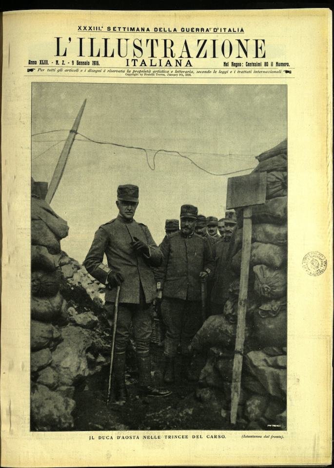 In-4, brossura. In buono stato di conservazione. In questo numero:Il Duca d'Aosta nelle trincee del Carso.