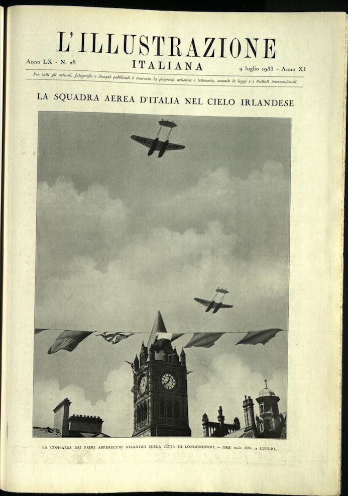 In-4, brossura. In buono stato di conservazione. In questo numero:La squadra aerea d'Italia nel cielo irlandese. La comparsa dei primi apparecchi atlantici sulla città di Londonderry - Ore 12.30 del 2 Luglio.