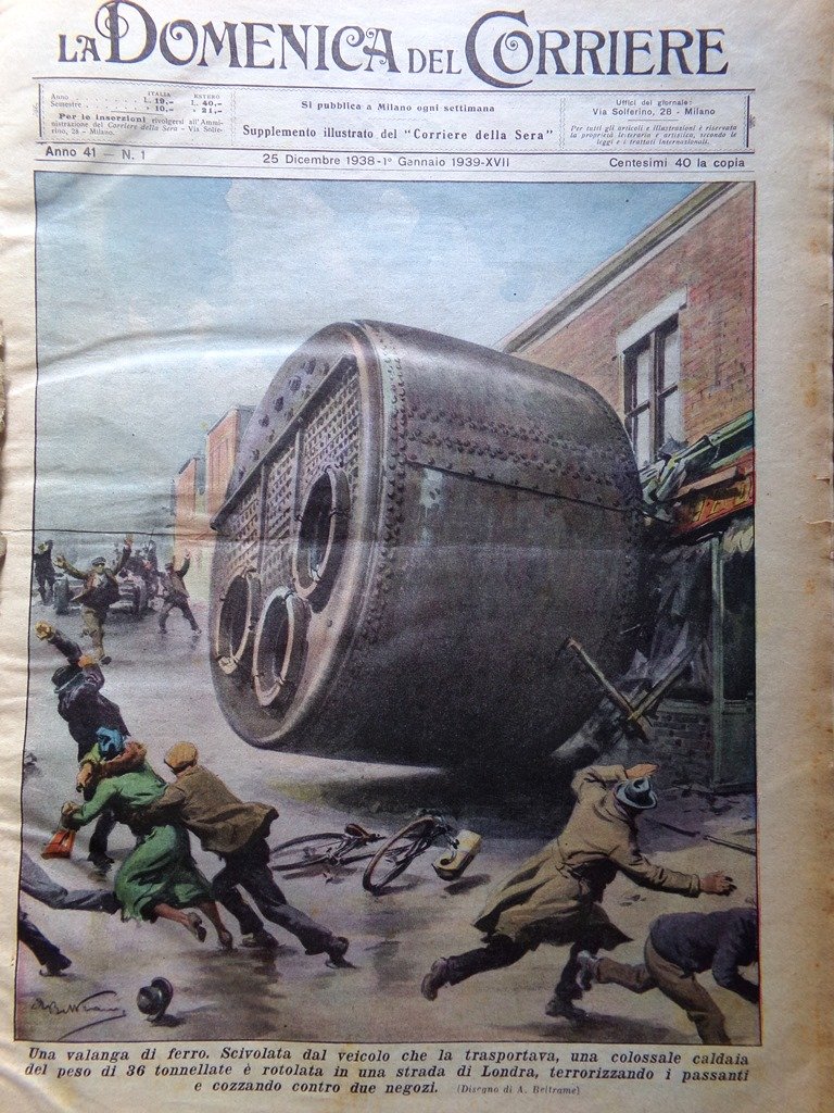 La Domenica del Corriere 1 Gennaio 1939 Carbonia Caltanissetta Mussolini Calcio | Periodici |