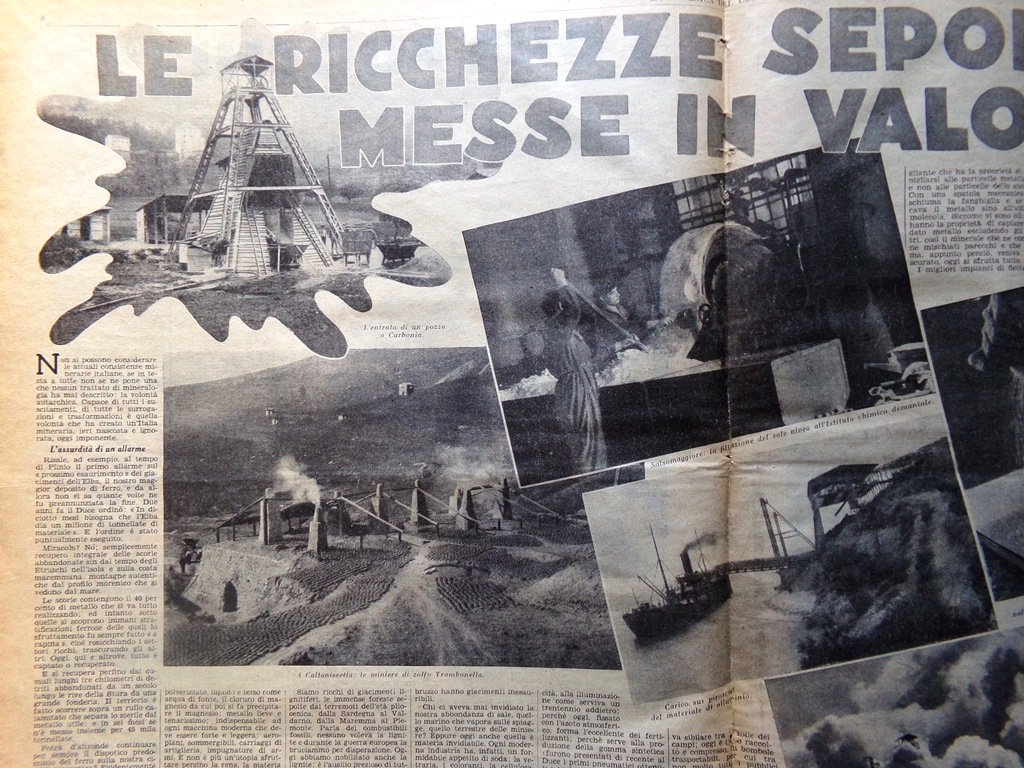 La Domenica del Corriere 1 Gennaio 1939 Carbonia Caltanissetta Mussolini Calcio