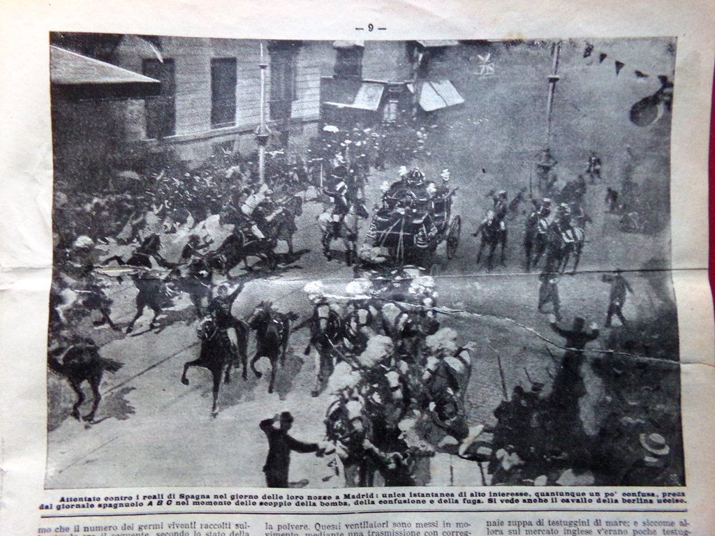 Attentato contro il Re di Spagna nel giorno delle sue nozze: una bomba lanciata da una finestra sul corteo (Achille Beltrame)