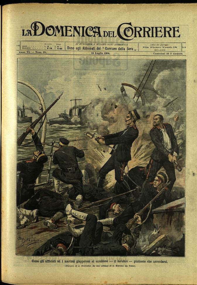 In-4, brossura, in buono stato di conservazione. In questo numero:"Come gli ufficiali ed i marinai giapponesi si suicidano, il harakiri, piuttosto che arrendersi.""Un salto mortale dall'antico ponte del diavolo presso Tolentino (Macerata).".