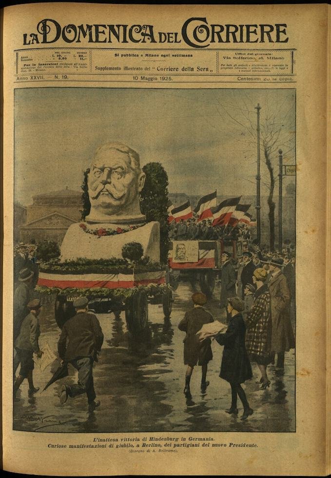 In-4, brossura, in buono stato di conservazione. In questo numero:"Il Principe di Galles nel cuore dell'Africa tropicale. I capi degli Ashanti, con i loro pittoreschi seguiti, si recano a rendere omaggio al figlio di Giorgio V.""L'inattesa vittoria di Hindenburg in Germania. Curiose manifestazioni di giubilo, a Berlino, dei partigiani del nuovo Presidente.".