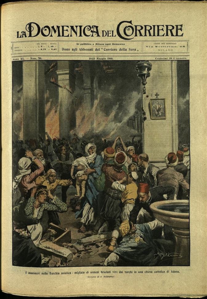In-4, brossura, in buono stato di conservazione. In questo numero:"Le avventure strane, ragazzo scampato dal terremoto di Messina è trovato addormentato in una via di Parigi ove giunse a piedi.""I massacri nella Turchia asiatica, migliaia di armeni bruciati vivi dai turchi in una chiesa cattolica di Adana.".