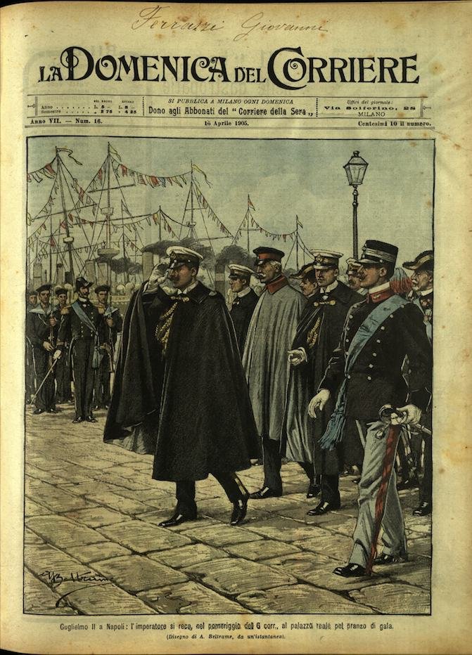 In-4, brossura, in buono stato di conservazione. In questo numero:"Guglielmo II a Napoli, l'imperatore si reca, nel pomeriggio del 6 corr, al palazzo reale pet pranzo di gala.""Una rivolta a Tripoli, soldati turchi che gettano le armi e si rifiutano di servire per non essere stati pagati.".