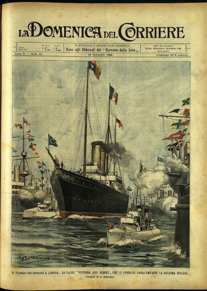 In-4, brossura, in buono stato di conservazione. In questo numero:"Il viaggio dei sovrani a Londra, lo yacht Victoria and Albert che li conduce passa davanti la squadra inglese.""Il giro dei bastioni di Milano al passo di corsa, la partenza dei 160 corridori.".