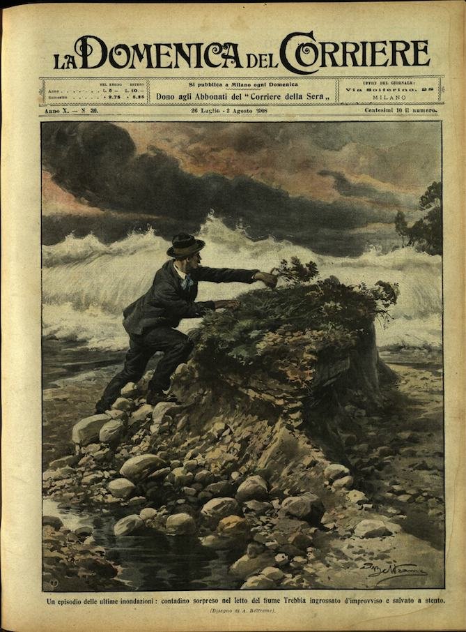 In-4, brossura, in buono stato di conservazione. In questo numero:"Un episodio delle ultime inondazioni, contadino sorpreso nel letto del fiume Trebbia ingrossato d'improvviso e salvato a stento.""Pirati di mare, saccheggio d'un vapore italiano naufragato sulle coste di Bretagna.".