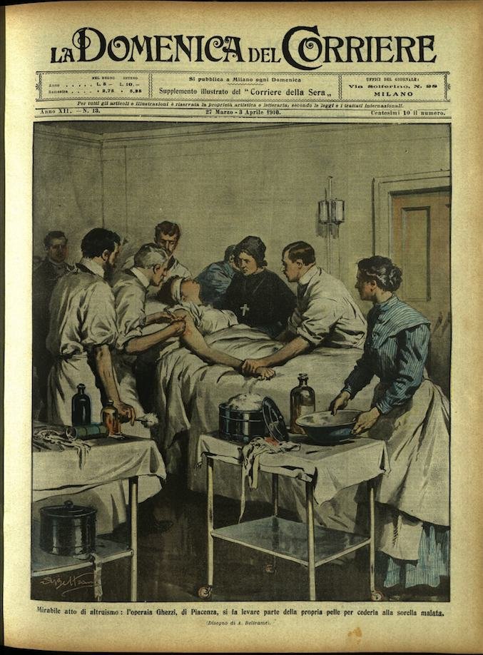 In-4, brossura, in buono stato di conservazione. In questo numero:"Tragica lotta fra due rivali a breve distanza dalle cascate del Niagara che poi travolsero natante e litiganti.""Mirabile atto di altruismo, l'operaia Ghezzi, di Piacenza, si fa levare parte della propria pelle per cederla alla sorella malata.".