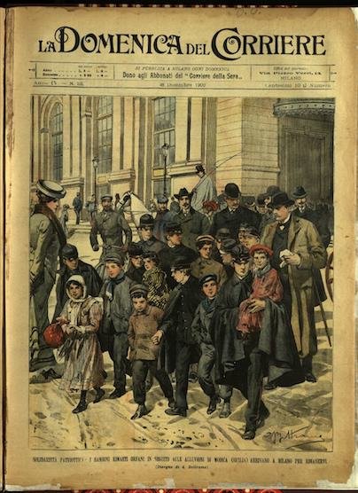 In-4, brossura, in buono stato di conservazione. In questo numero:"Solidarieta patriottica, i bambini rimasti orfani in seguito alle alluvioni di Modica (Sicilia) arrivano a Milano per rimanervi.""Un episodio del freddo in Ungheria, i lupi assaltano gli abitanti delle campagne ove il termometro segna, 15°.".