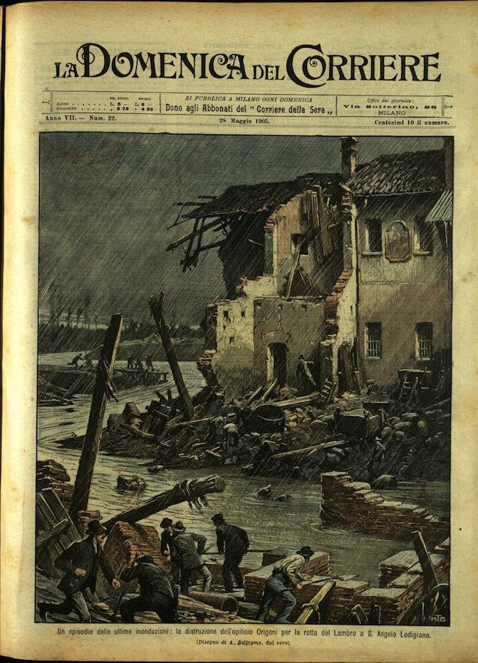 In-4, brossura, in buono stato di conservazione. In questo numero:"Un episodio delle ultime inondazioni, la distruzione dell'opificio Origoni per la rotta del Lambro a S. Angelo Lodigiano.""La esplosione sotto il boulevard Sebastopoli di Parigi durante il passeggio del pubblico.".