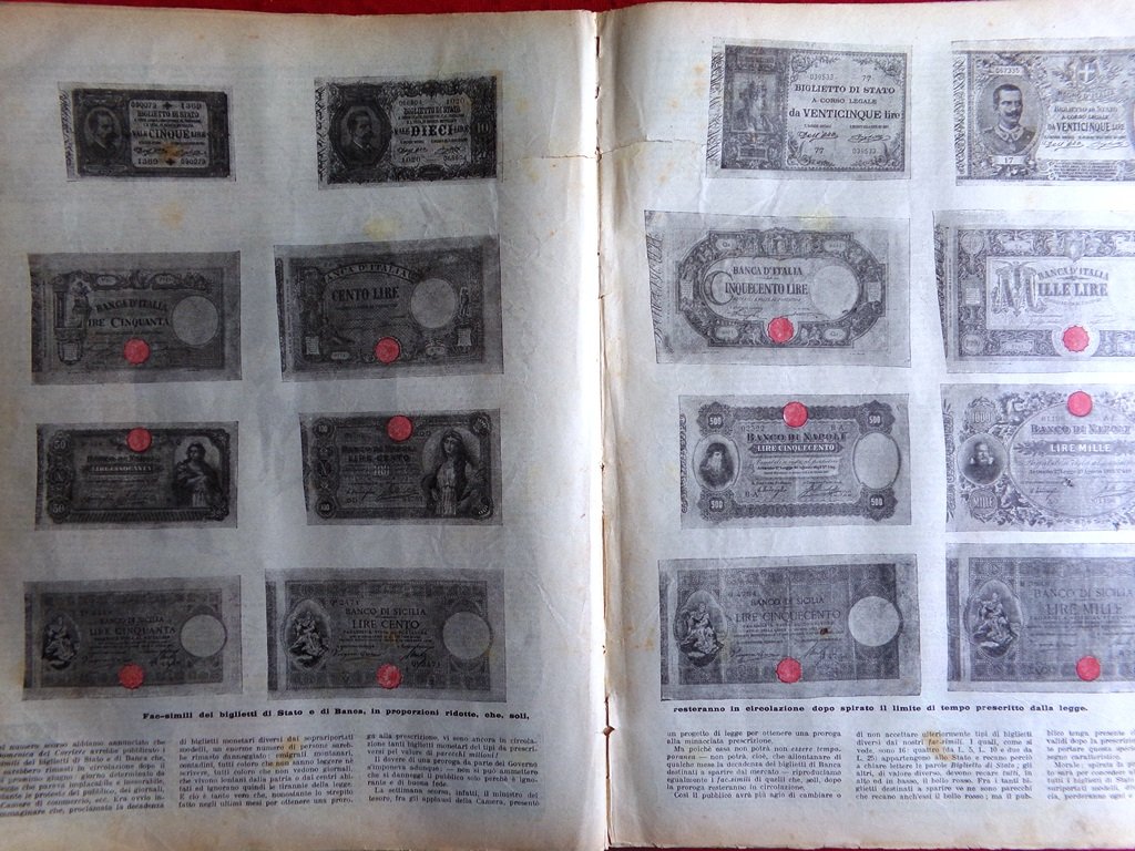 Fac-simili dei biglietti di stato e di banca.
