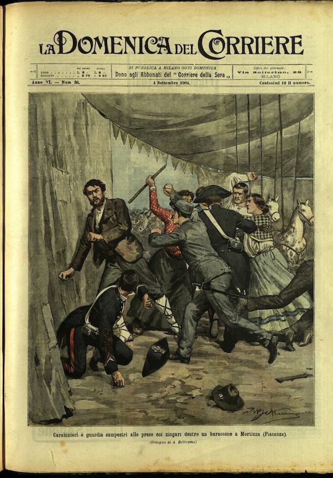 In-4, brossura, in buono stato di conservazione. In questo numero:"Le feste caratteristiche, il trasporto dell'immagine della santa protettrice dal duomo a santa Lucia, per mare, a Napoli.""Carabinieri e guardie campestri alle prese coi zingari dentro un baraccone a Mortizza (Piacenza).".