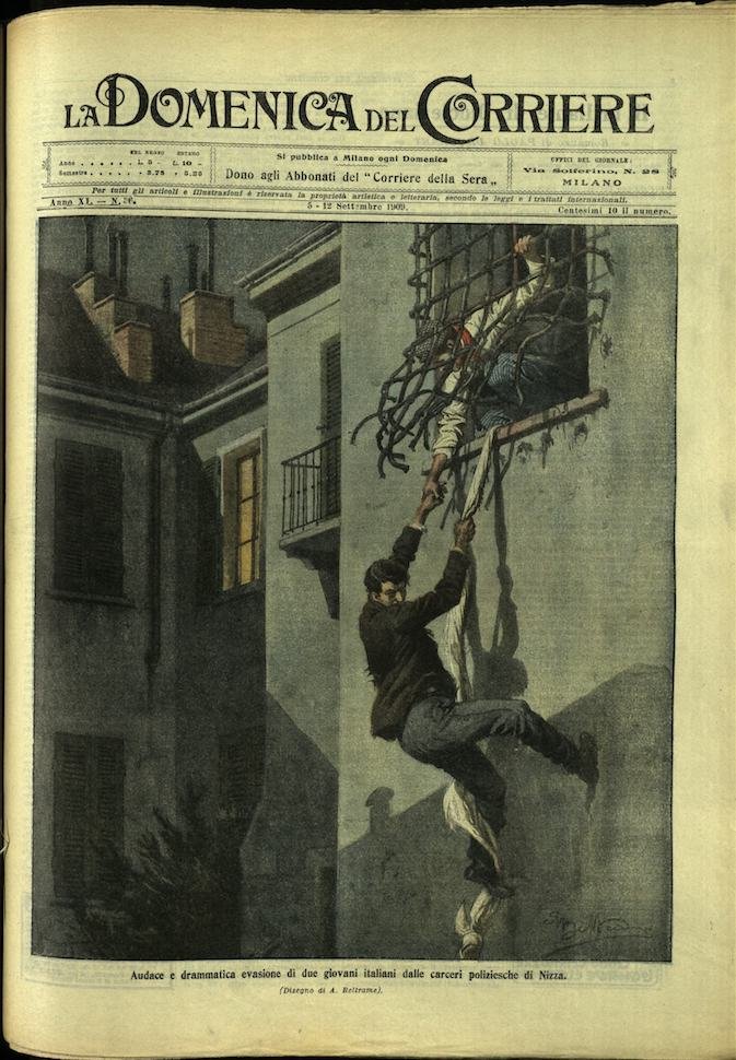 In-4, brossura, in buono stato di conservazione. In questo numero:"Audace e drammatica evasione di due giovani italiani dalle carceri poliziesche di Nizza.""Le meravigliose gare di aviazione a Reims, aeroplani e dirigibili si rincorrono in aria nella corsa finale pel gran premio (27 agosto).".