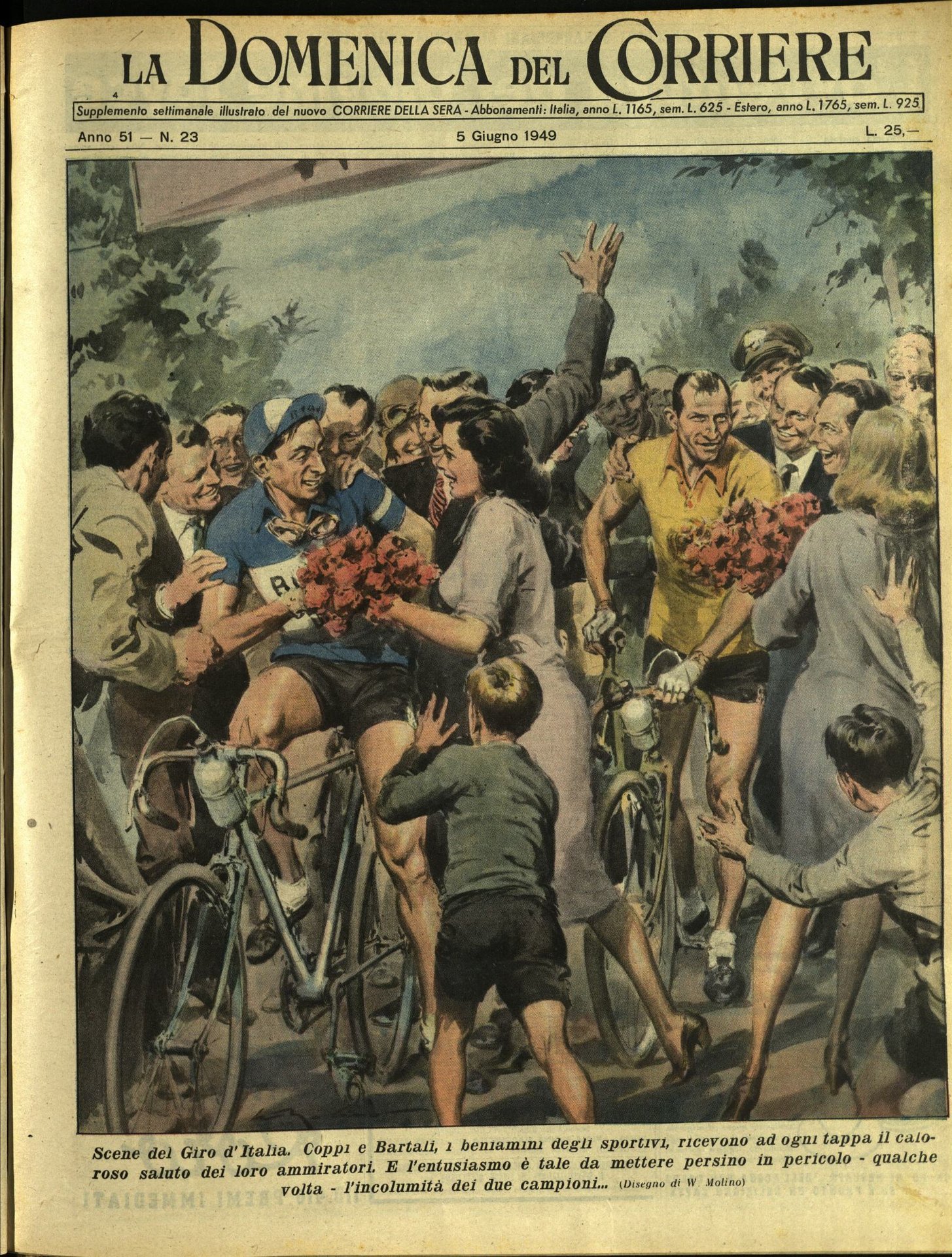 In-4, brossura, in buono stato di conservazione. In questo numero:"Scene del Giro d'Italia. Coppi e Bartali, i beniamini degli sportivi, ricevono ad ogni tappa il caloroso saluto dei loro ammiratori. E l'entusiasmo e tale da mettere persino in pericolo - qualche volta - l'incolumita dei due campioni..""Le commedie del contrabbando. Fermata dalla polizia tributaria, all'uscita da una stazione di Milano, per il suo atteggiamento malsicuro e per alcune forme poco naturali del suo corpo, una giovane proveniente dalla frontiera svizzera è stata perquisita e trovata in possesso di oltre duecento orologi d'oro.".