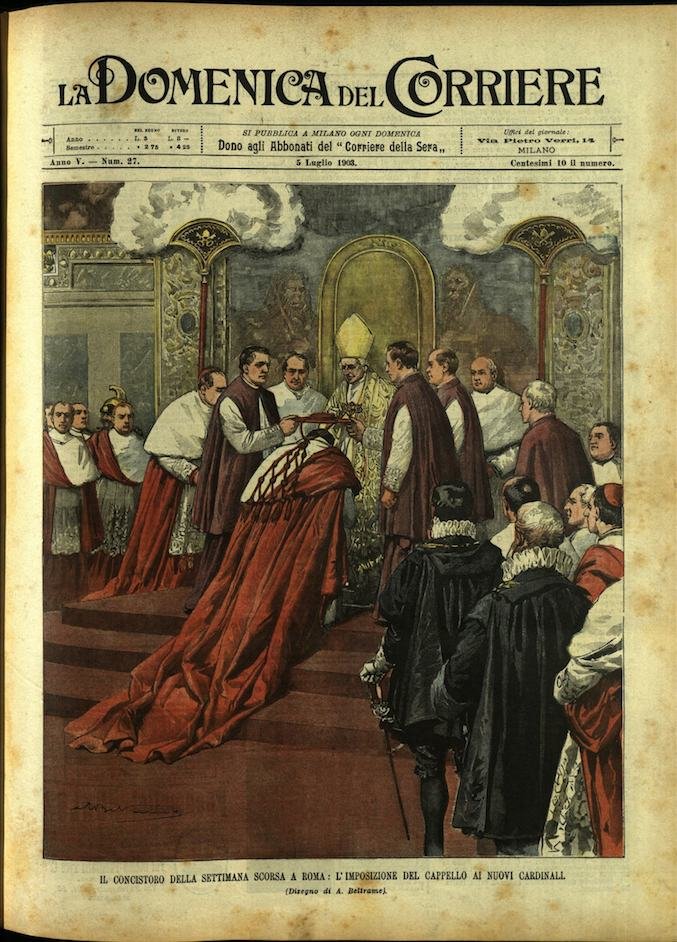 In-4, brossura, in buono stato di conservazione. In questo numero:"Il concistoro della settimana scorsa a Roma, l'imposizione del cappello ai nuovi cardinali.""I palombari portano a galla i cadaveri dal vapore liban naufragato presso marsiglia.".