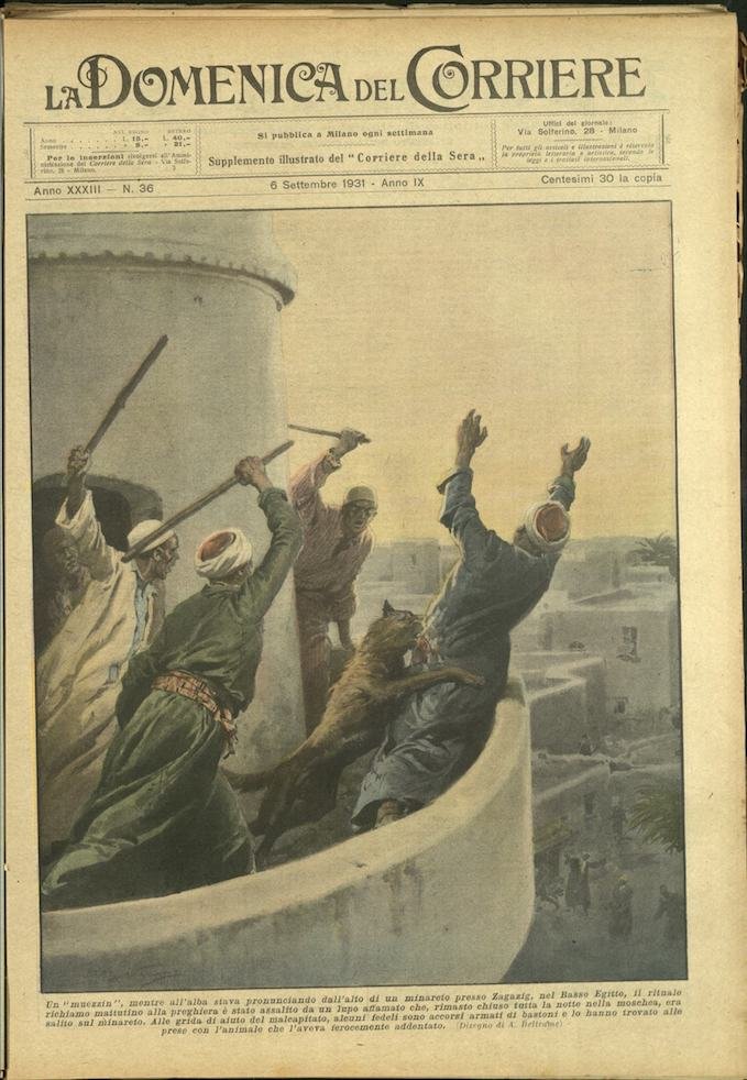 In-4, brossura, in buono stato di conservazione. In questo numero:"Una torma di ladri aveva fatto una razzia di cavalli nel villaggio romeno di Izmall. Dato l'allarme, i contadini li hanno inseguiti e raggiunti. Dopo una zuffa accanitissima, con morti e feriti, i cavalli sbandati sono stati ripresi dai loro padroni.""Un muezzin, mentre all'alba stava pronunciando dall'alto di un minareto presso Zagazig, nel Basso Egitto, il rituale richiamo mattutino alla preghiera è stato assalito da un lupo affamato che, rimasto chiuso tutta la notte nella moschea, era salito sul minareto. Alle grida di aiuto del malcapitato, alcuni fedeli sono accorsi armati di bastoni e lo hanno trovato alle prese con l'animale che l'aveva ferocemente addentato.".