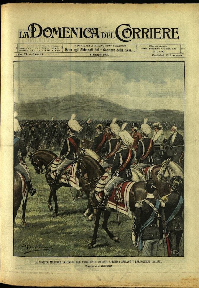 In-4, brossura, in buono stato di conservazione. In questo numero:"La squadra francese a Napoli, l'entusiasmo dopo il banchetto dei marinai italiani e francesi nella galleria Umberto I.""La rivista militare in onore del presidente Loubet, a Roma, sfilano i bersaglieri ciclisti.".