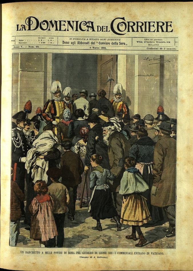 In-4, brossura, in buono stato di conservazione. In questo numero:"Un banchetto a mille poveri di Roma pel giubileo di leone XIII, i commensali entrano in vaticano.""Le vittime del dovere, uccisione di carabinieri in provincia di Roma da parte di un figlio per liberare il padre ladro.".