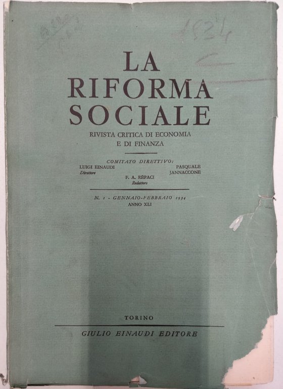 LA RIFORMA SOCIALE. RIVISTA CRITICA DI ECONOMIA E DI FINANZA. ANNATA 1934. | Periodici |