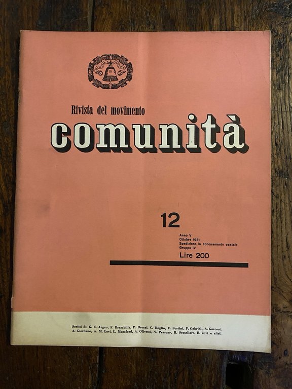 Olivetti Adriano Comunità Rivista trimestrale del movimento Anno V n. 12 1951
