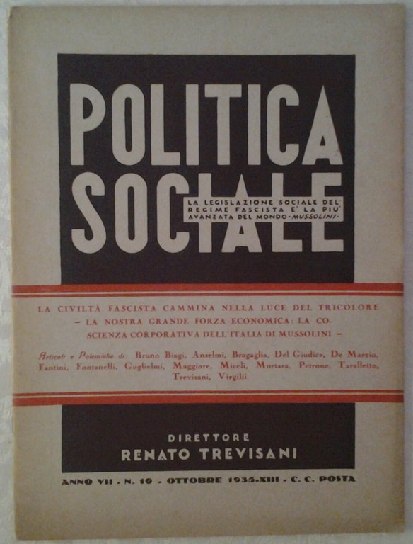 POLITICA SOCIALE. ANNO VII - N. 10 OTTOBRE 1935. | Periodici |