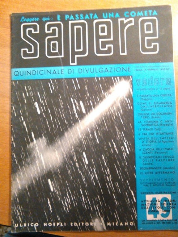 SAPERE 15 GENNAIO 1937 numero 49 Hoepli rivista di divulgazione scientifica