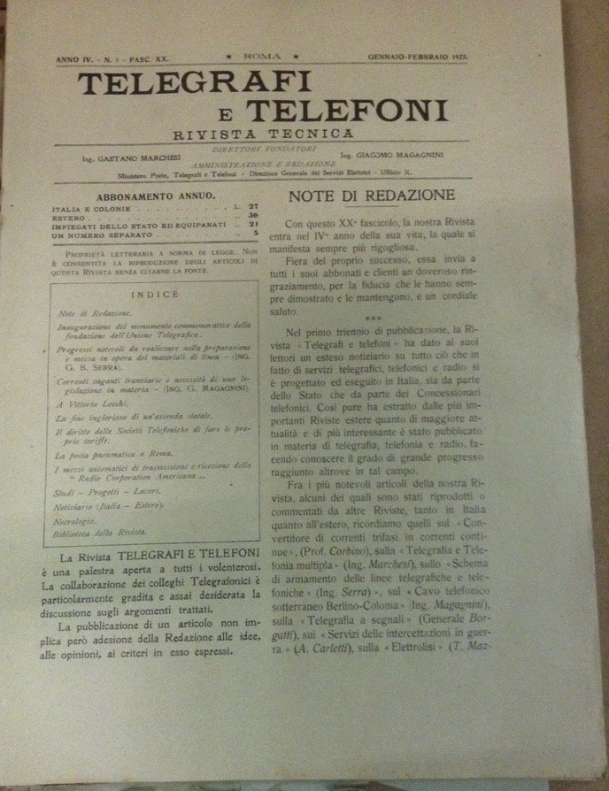 TELEFONI E TELEGRAFI. - Rivista tecnica.