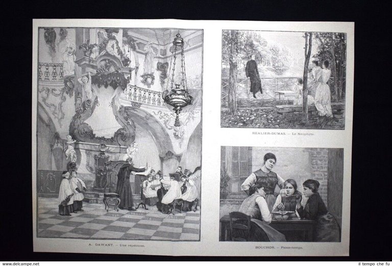 A. Dawant - Dumas - Bouchor + Minet - Surand - J. Veber Incisione del 1894