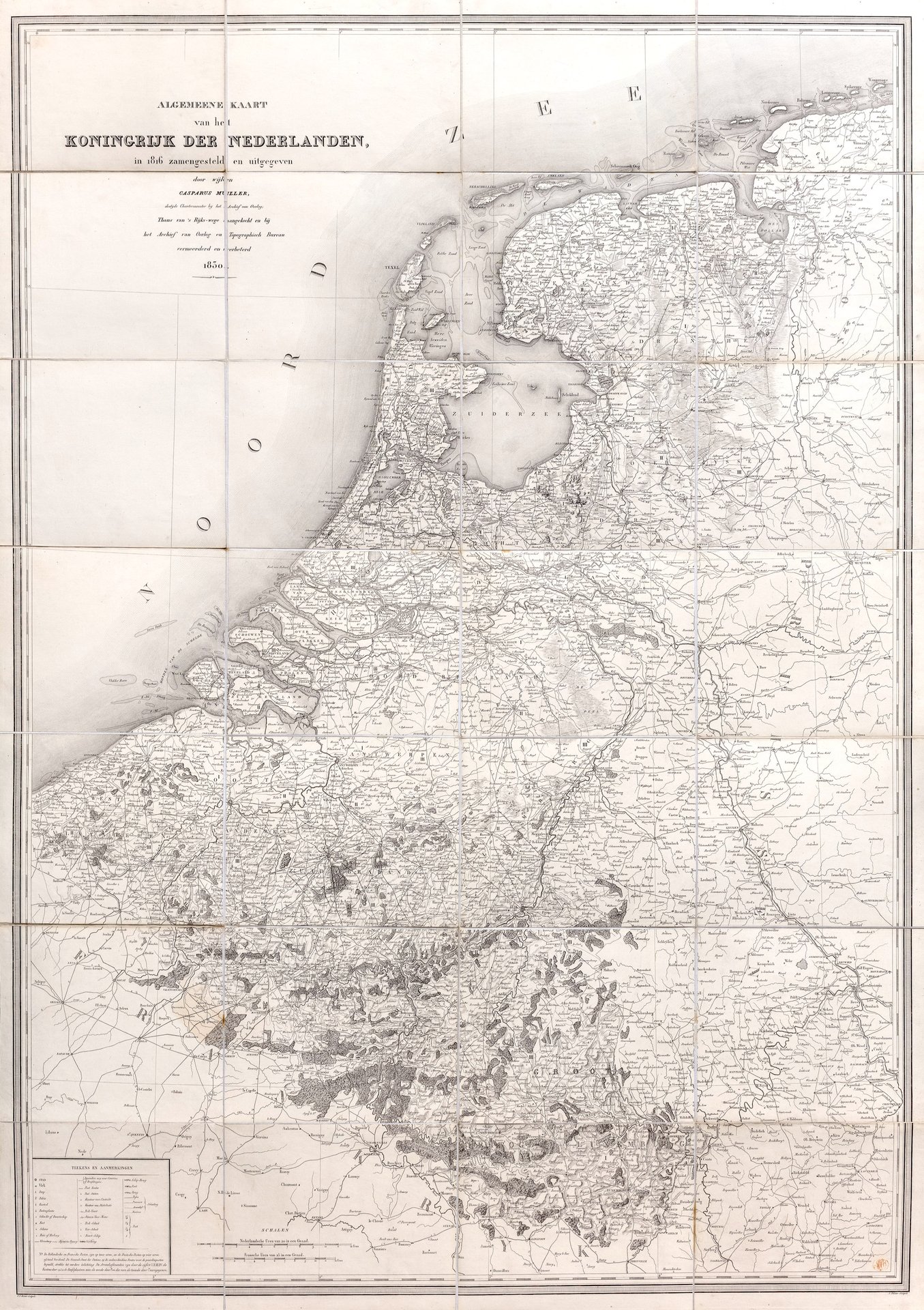 Algemeene Kart van het koningrijk der Nederlanden in 1816 zamesteldeld en uitgegeven vermeerdet | Stampe | MULLER CASPARUS