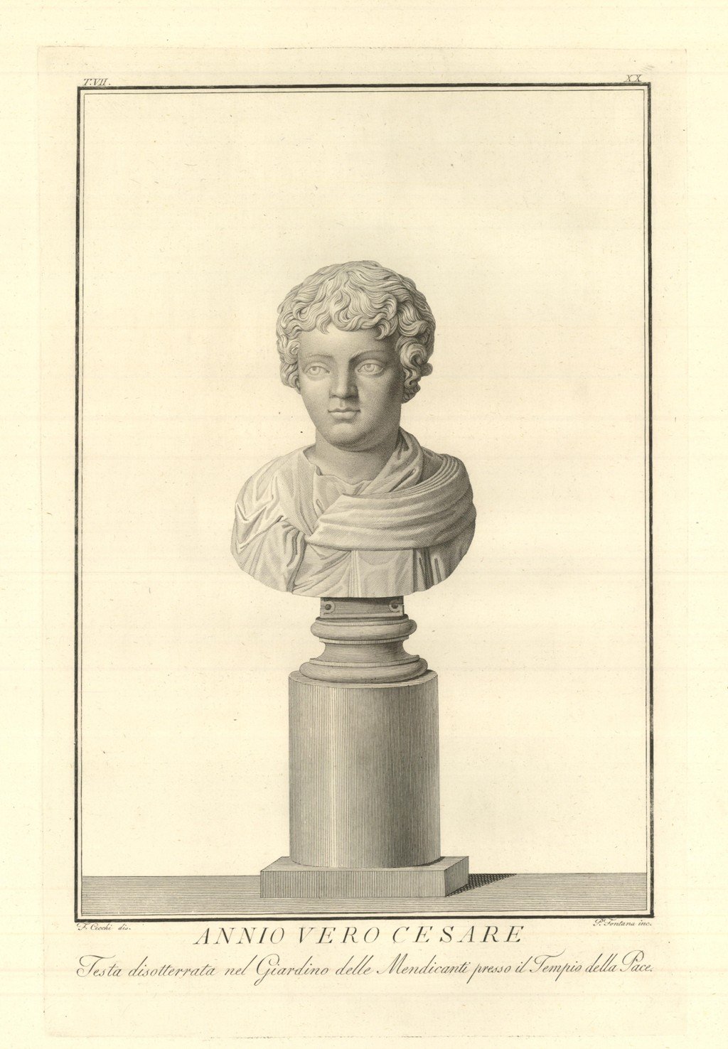 ANNIO VERO CESARE / Testa disotterrata nel Giardino delle Mendicanti presso il Tempio della Pace | Stampe | Cecchi F. dis. & Fontana P. inc.