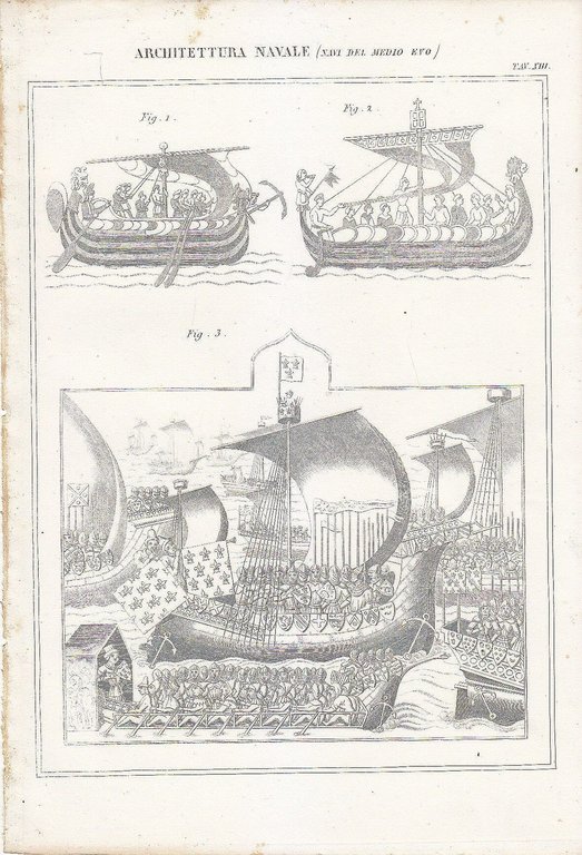 ARCHITETTURA NAVALE NAVI MEDIO EVO Incisione Stampa Antica 1866 Tavola Originale