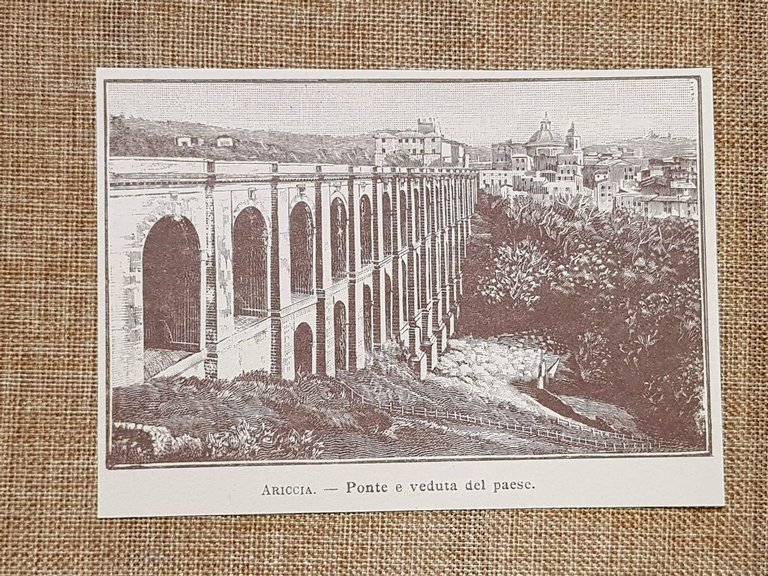 Ariccia nell'800 Ponte e veduta del paese Roma Lazio