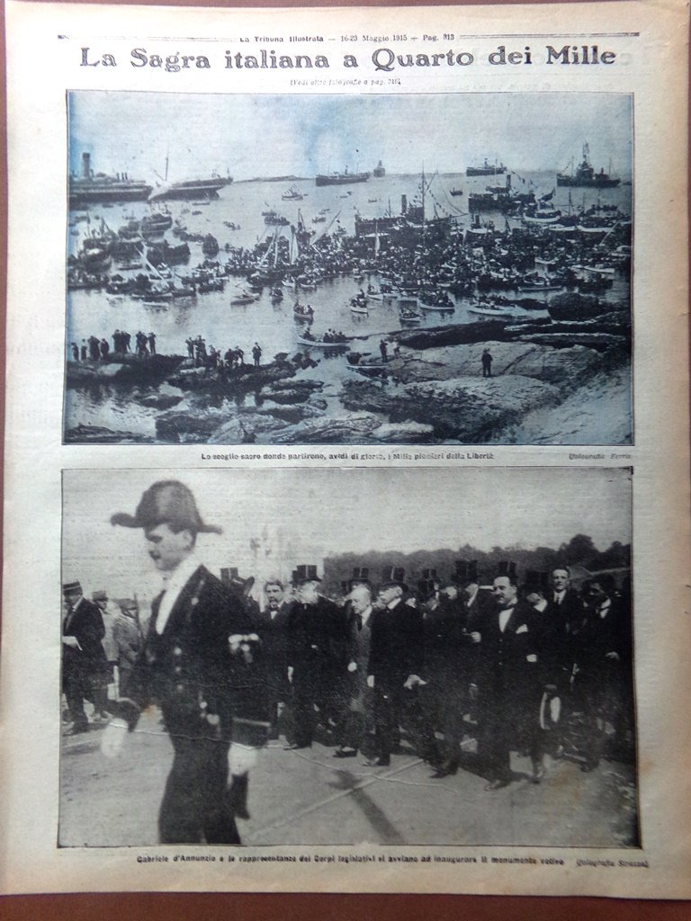 Articolo del 1915 WW1 La Sagra Italiana a Quarto dei Mille D'Annunzio Garibaldi