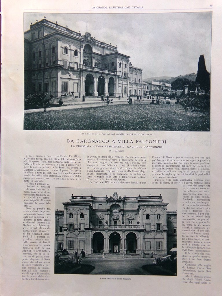 Da cargnacco a Villa Falconieri - la prossima nuova residenza di Gabriele d'Annunzio (di Ettore Cozzani)