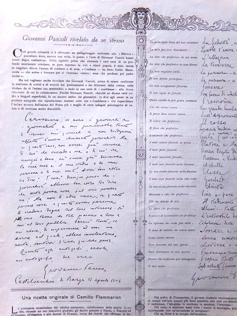 Articolo del 1925 Giovanni Pascoli rivelato da se stesso