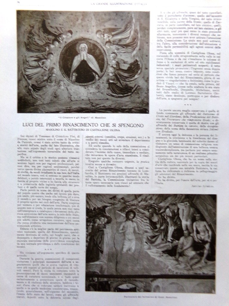 Articolo del 1925 Piazza Duomo Milano Masolino Battistero Castiglione Olona