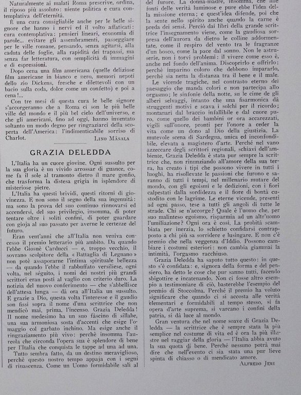 Articolo del 1927 Premio Nobel di Grazia Deledda di Alfredo Jeri Margit Bethlen
