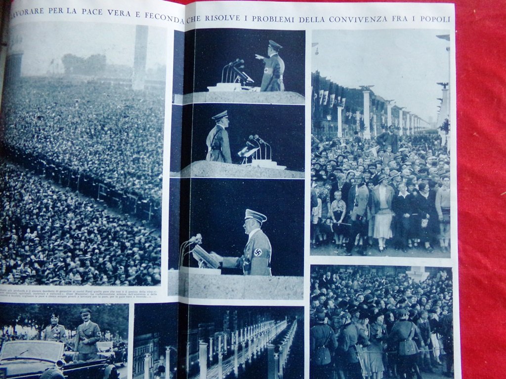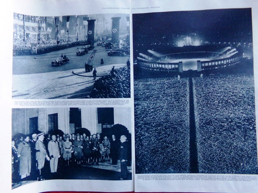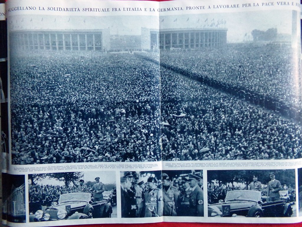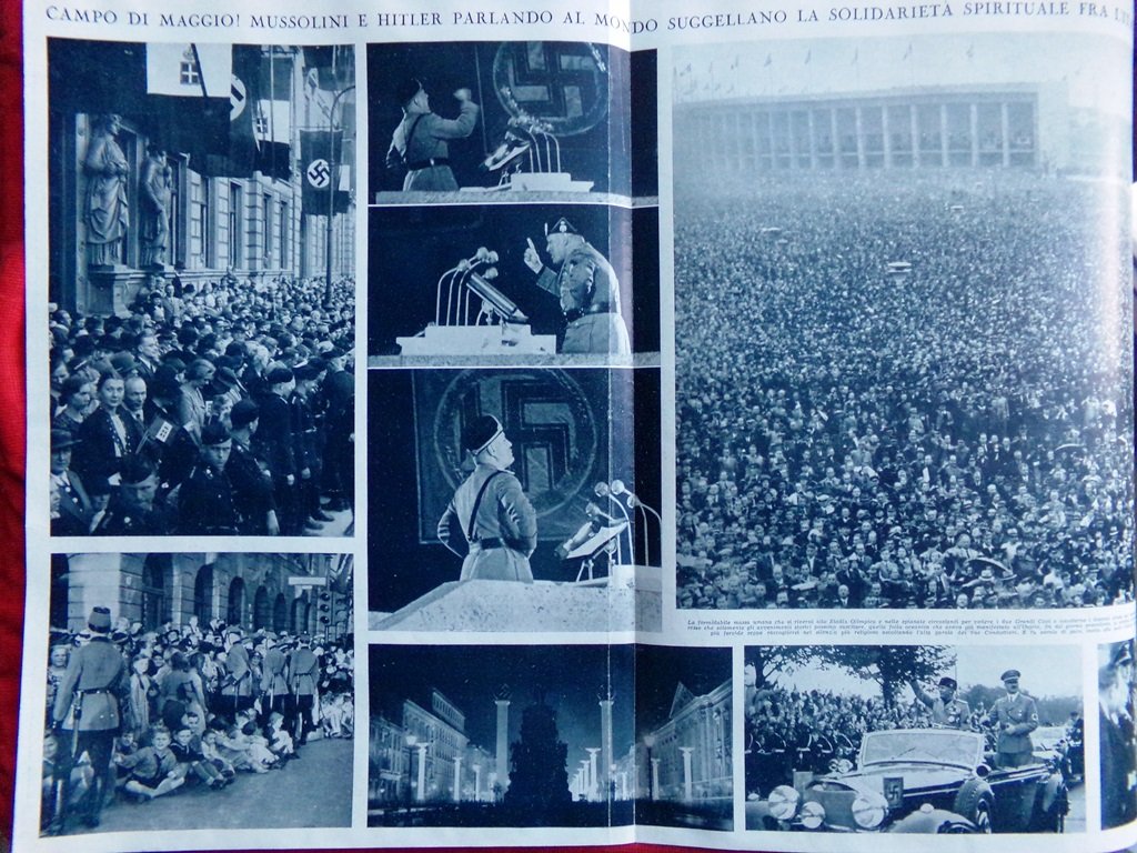 Articolo del 1937 Campo di Maggio Mussolini Hitler Solidarietà Spirituale Popoli
