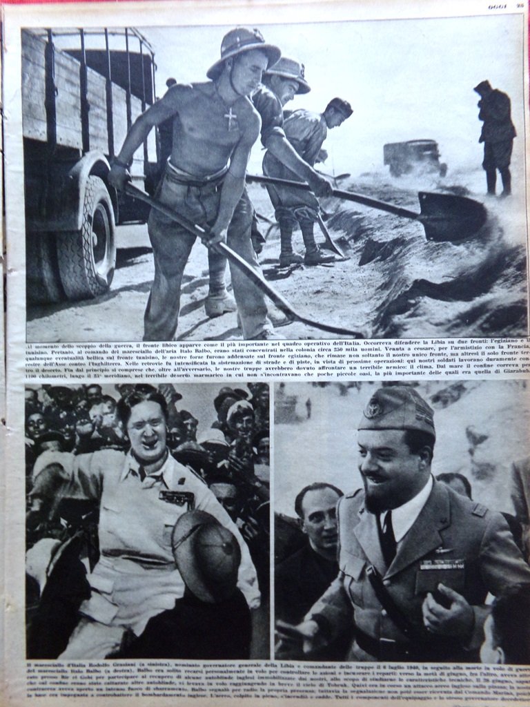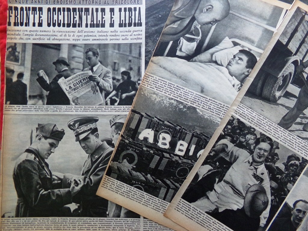 FRONTE OCCIDENTALE E LIBIA: Italia in guerra, Giuseppe Pressato, Forte di Traversette, Fanti sul Moncenisio, Trasporto ferito sul San Bernardo, Mentone, Maria José dama Croce Rossa, Giovanni Bonanno, Giuseppe Goracci, Mussolini visita un ferito, Termignon, Monginevro, Rodolfo Graziani, Italo Balbo, Lido Poli, Ernesto Botto