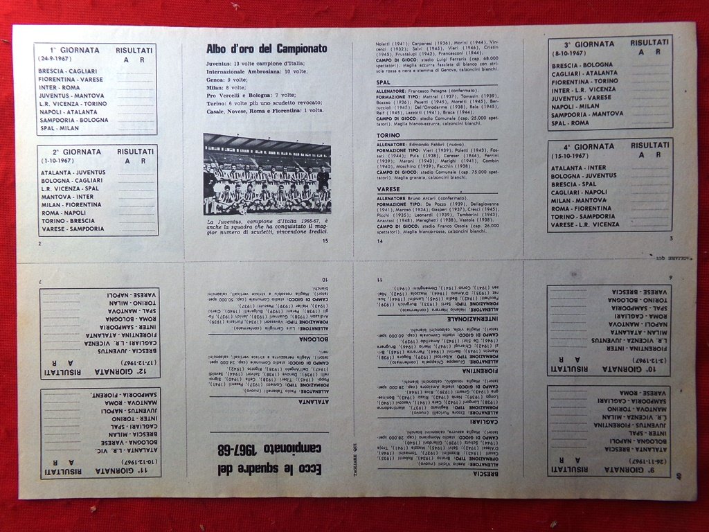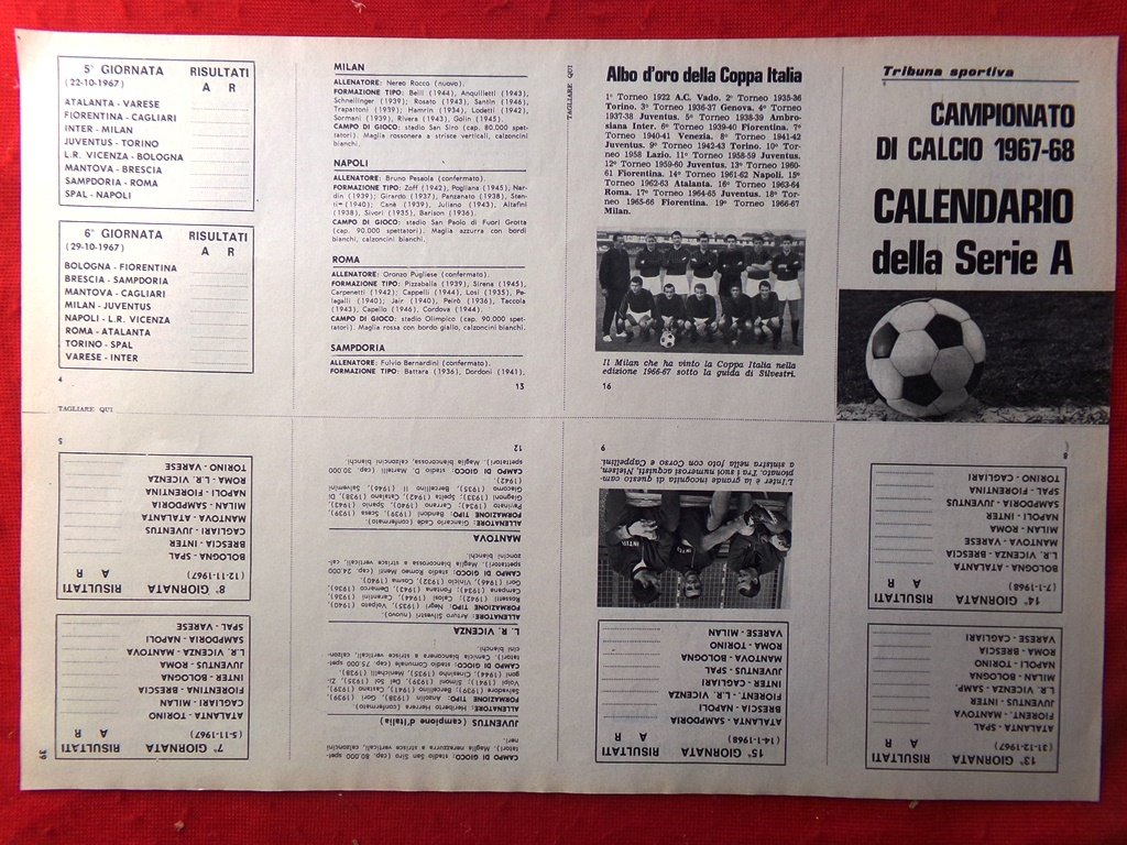 Il calendario pieghevole del campionato di Calcio 1967-1968